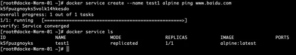 docker service create --name test1 alpine ping www.baidu.com