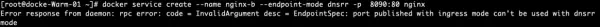 描述是参数不对,在dnsrr下不能开放端口的,他们之间是冲突的。dnsrr是给只通过名字访问。如果不加入overlay的网络它就是独立的。
