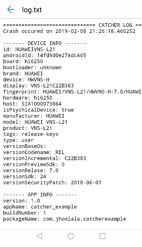 Catcher 也会收集用户设备硬件和操作系统的信息。这些数据的获取是可以不经用户任何形式的授权,因为它不含有用户的个人信息。这些数据是很有帮助的,因为有些时候产生错误是因为设备的问题而不是开发者的问题。