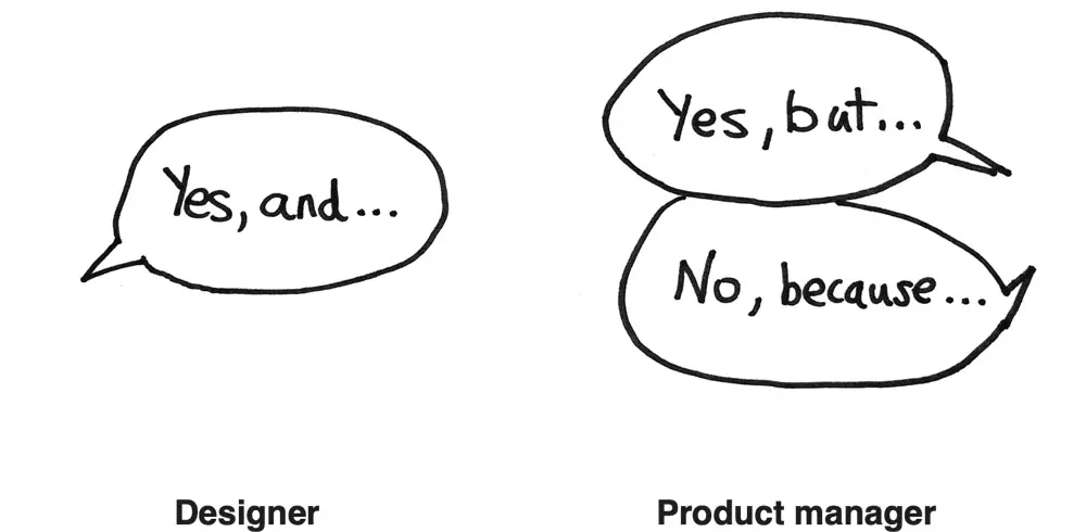 设计师和产品都需要多鼓励其他人向他们提出想法和要求,同时也能够分享一些相反的意见。关键的区别在于产品很多时候都需要说“不”,执行产品战略的本质是需要选择不做什么。另一方面,设计师应该多说“是”,并以积极的“我能行”的态度来解决问题。