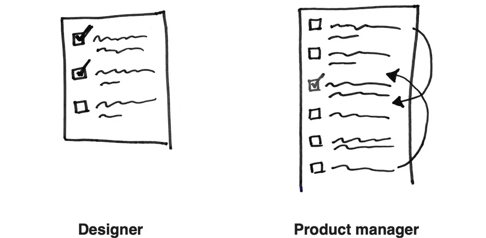 不同的团队对这些杂活有不同的分配方式。有些公司有产品专家或者项目经理,他们负责分担一部分项目工作。但根据我自己的经验来说,产品经理通常会把更多的杂活自己揽下来,以省出更多的时间给到开发和设计师。