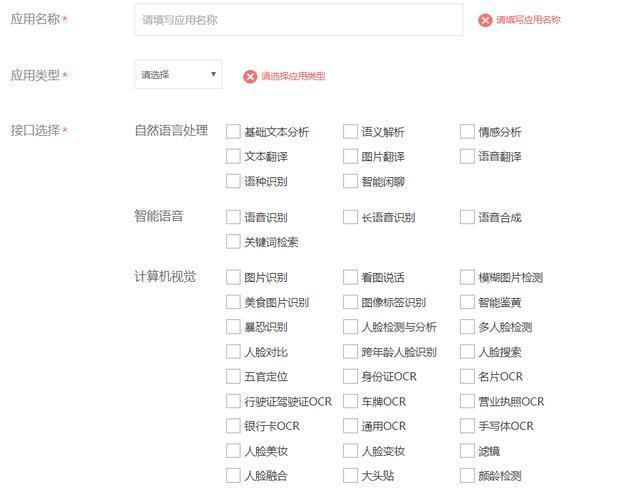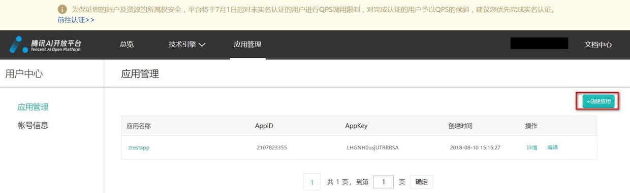 用您的QQ号登录腾讯人工智能开放平台,创建一个新的应用: