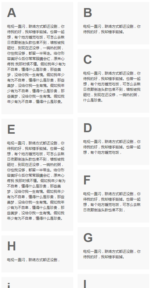 - 将每一列目前的高度存到数组中,插入下一个元素时比较当前数组哪一列更空,计算top和left值,插入后更新高度数组