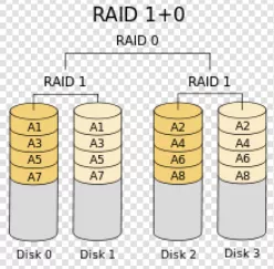 RAID 10是先镜射再分割数据,再将所有硬盘分为两组,视为是RAID 0的最低组合,然后将这两组各自视为RAID 1运作。