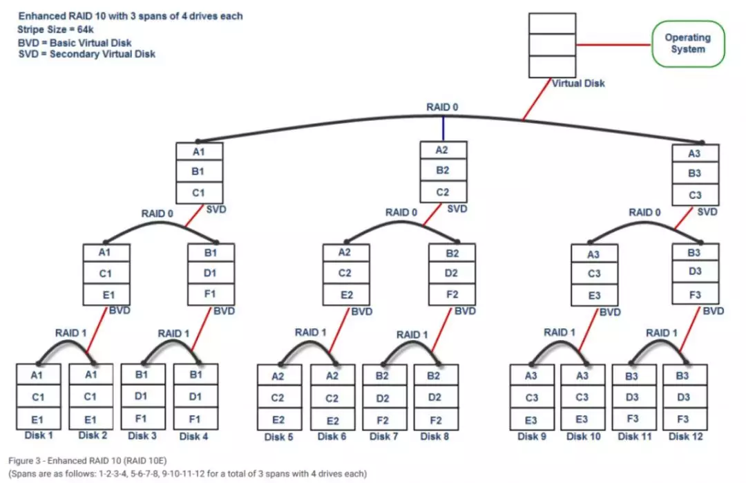 RAID 10E支持 12块硬盘只配置3个SPAN,每个SPAN 4块硬盘