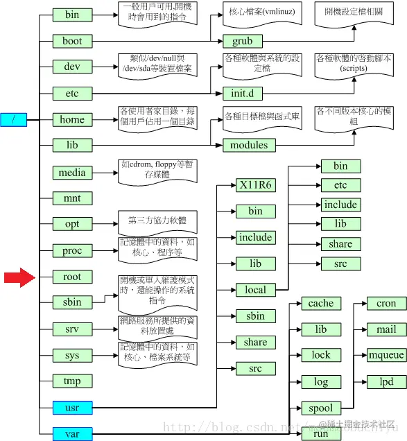 先 cd .. 跳转到上一层, 再 ls -la ,就可以看到类似下图的目录结构了