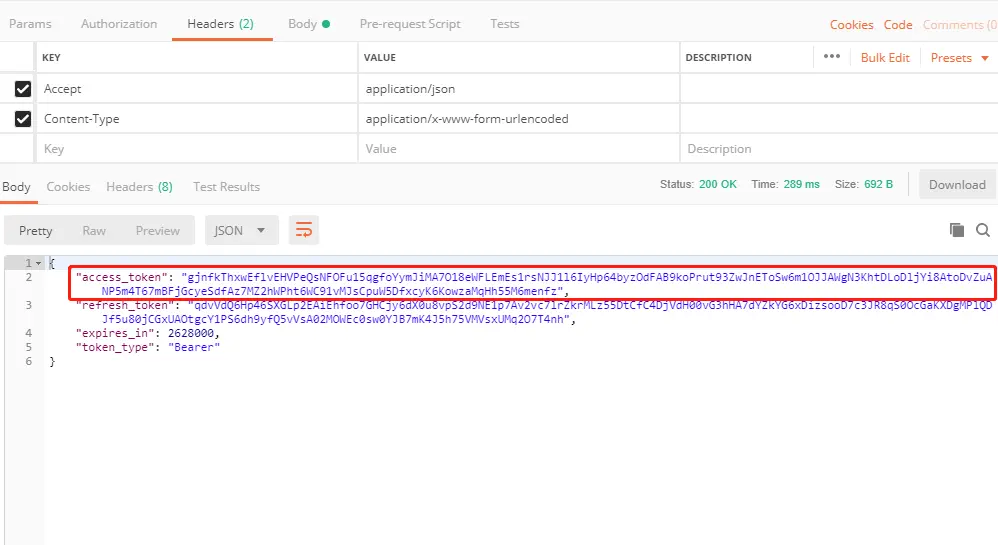 Authorization字段这里的话前面的字符串是固定的Bearer <access-token>,接着看BODY这项
