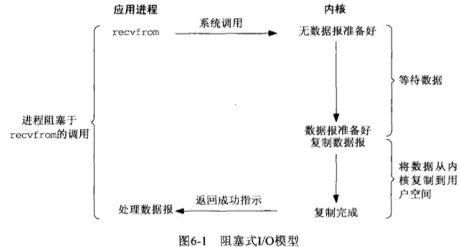 当用户进程调用了recvfrom这个系统调用,内核就开始了io的第一个阶段:等待数据准备。如果数据还没准备好(比如还没有收到一个完整的udp包),这时候内核要等待足够的数据到来,而在用户进程这边,进程会被阻塞。当内核等到数据准备好,进程将数据从内核中拷贝到用户空间,然后内核返回结果,用户进程才解除block状态,重新运行起来。