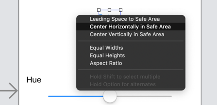 一些自动布局的时间到了! 按住Ctrl键并从按钮拖动到视图,然后在“安全区域”中选择Center Horizontally。