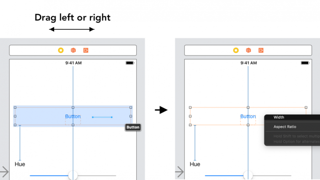 现在,将按钮的大小调整为您喜欢的大小。 按住Ctrl键并从按钮向左或向右拖动,然后选择Width。
