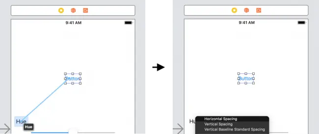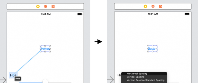按住Ctrl键并从按钮拖动到hue label,然后选择Vertical Spacing。