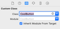 仍然选中该按钮,转到屏幕右侧的Inspectors侧栏,然后单击Identity inspector。 在Custom Class ▸ Class中,输入CoolButton以使您的按钮成为CoolButton类的实例。