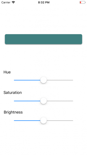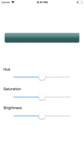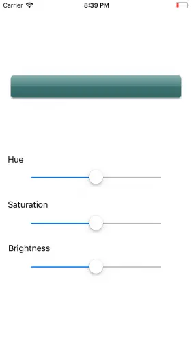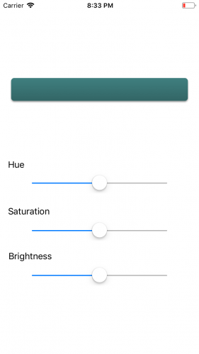 默认情况下,UISliders的范围为0.0到1.0。 这非常适合您的色调,饱和度和亮度值,范围也从0.0到1.0,因此您可以直接设置它们。