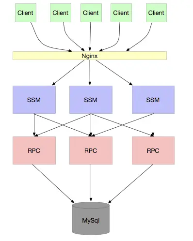 - 单体应用 每个创业公司基本都是从类似 SSM 和 SSH 这种架构起来的,没什么好讲的,基本每个程序员都经历过。