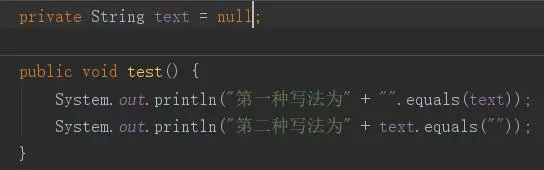 抛出了空指针异常,所以推荐第一种写法来避免空指针异常