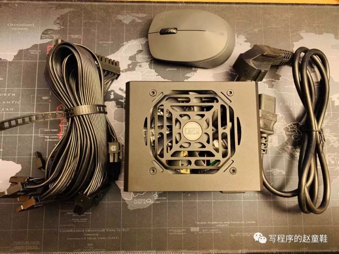 电源选用的是全汉MS450全模组SFX电源。赵童鞋也是第一次买SFX的电源,没想到会这么小,居然只比鼠标大一丢丢。
