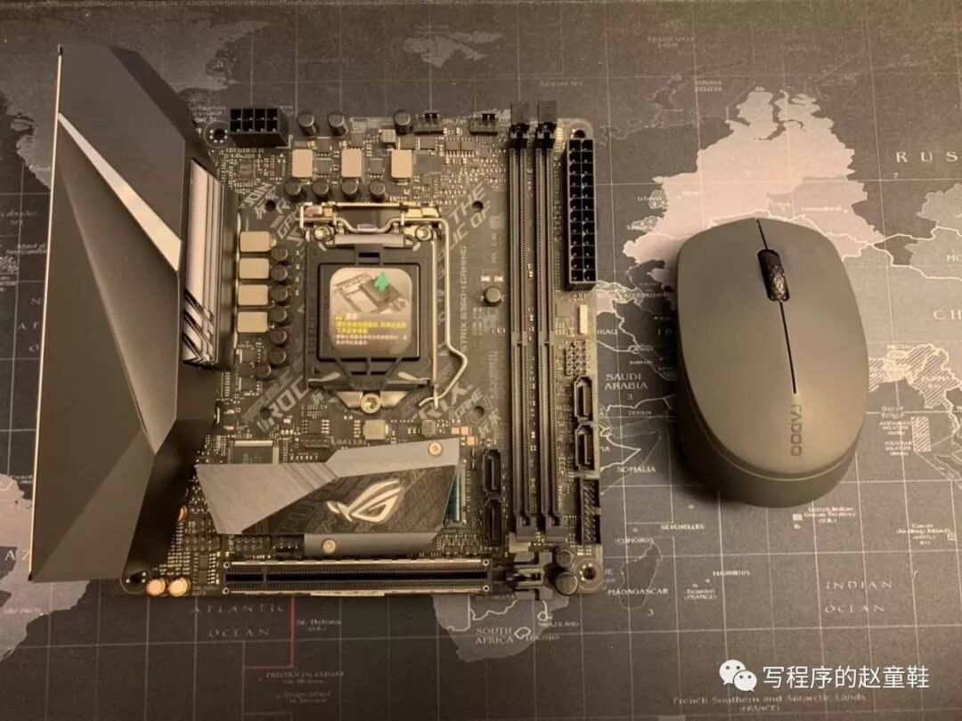 主板为华硕B360i。从主板型号就可以看出,这是个基于英特尔B360芯片组的主板,“i”则代表了是ITX尺寸,可以看到,ITX的主板真的很小了。其实赵童鞋是微星粉,无奈ITX的主板选择太少了,而华硕的这款用料充足,还自带了这么大一块接口散热器,最重要的是够帅๑乛◡乛๑。