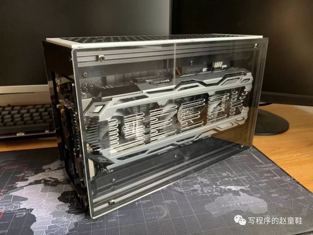 这张显卡是真的很长,几乎要碰到机箱的边缘了,童鞋们如果想组装小机箱一定要先问清楚各种尺寸,不然配件装不下去就很尴尬。