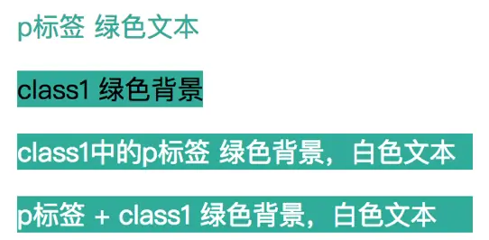 <p class="class1">p标签 + class1 绿色背景,白色文本</p>