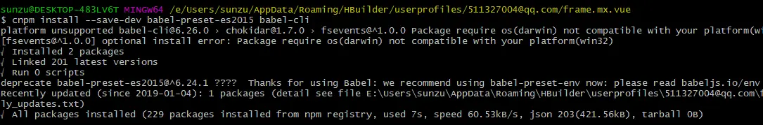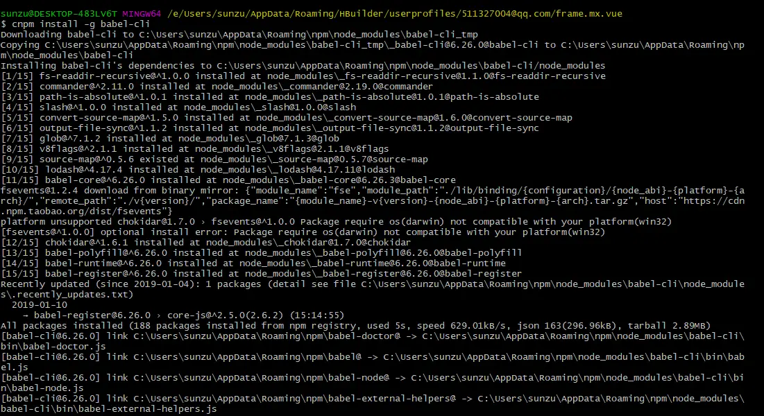 cnpm install --save-dev babel-preset-es2015 babel-cli