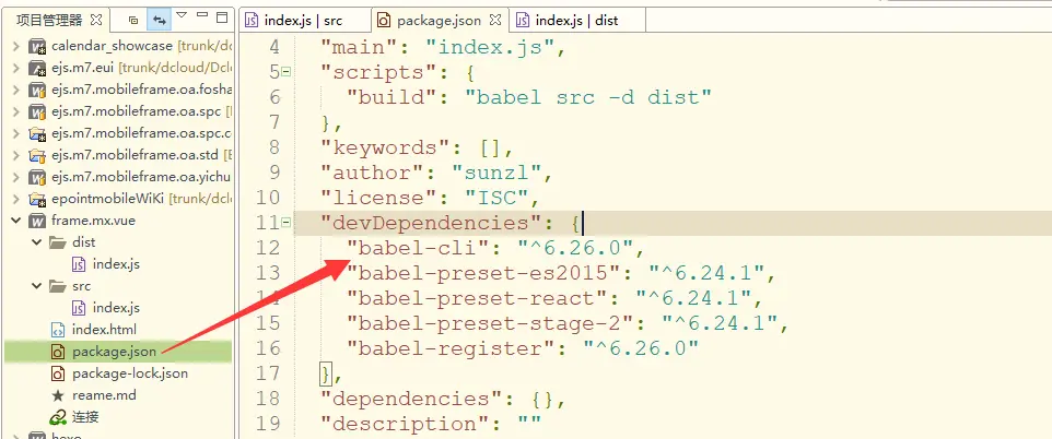 dist:利用Babel编译成的ES5代码的文件夹,在HTML页面需要引入的时这里的js文件。