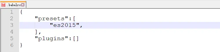 在根目录下新建.babelrc文件(注意,以点开头的文件是隐藏文件,需要在linux环境通过命令创建),并打开录入下面的代码
