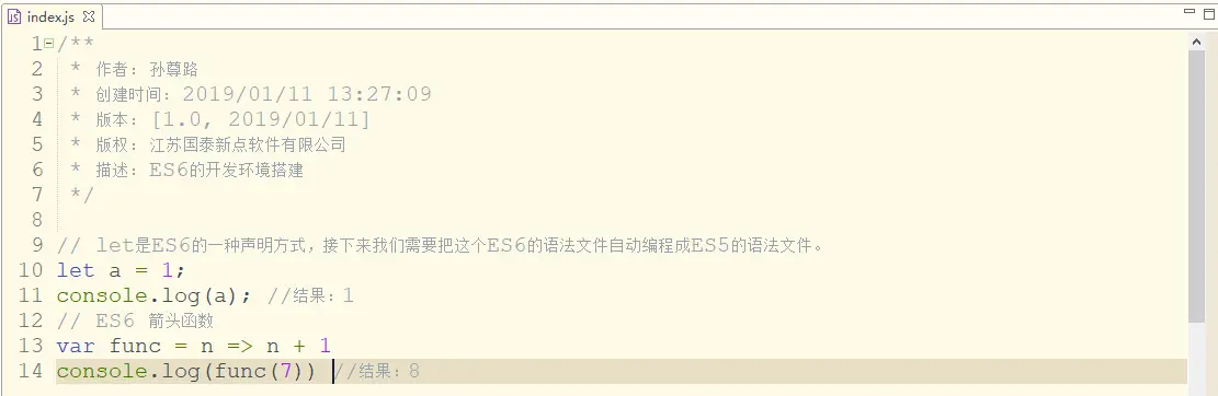 在src目录下,新建index.js文件。这个文件很简单,我们只作一个a变量和箭头函数的声明,并用console.log()打印出来。