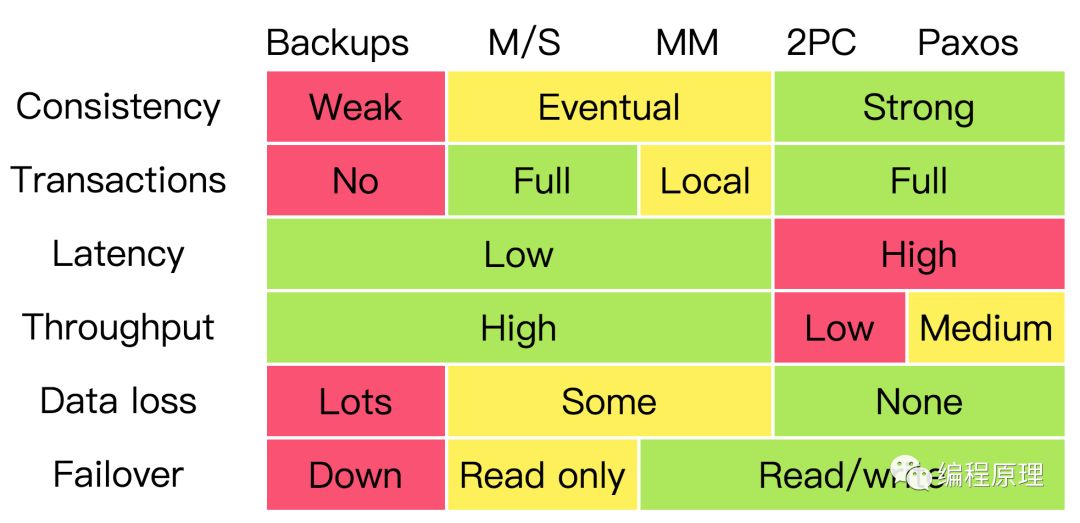 该图对比了不同一致性算法下的事务,性能,错误,延迟的平衡。