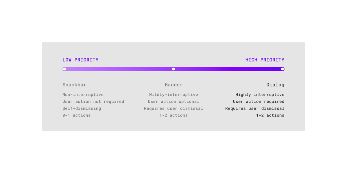 对话框出现时没有警告,要求用户停止当前任务。应该谨慎使用它们,因为并非每个选择或设置都需要中断。