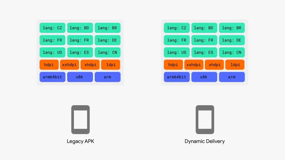 App Bundle会将我们Apk的所有东西打为压缩包上传到Google Play。而Google Play会在用户下载的时候,根据设备特性生成优化过的Apk给用户安装。