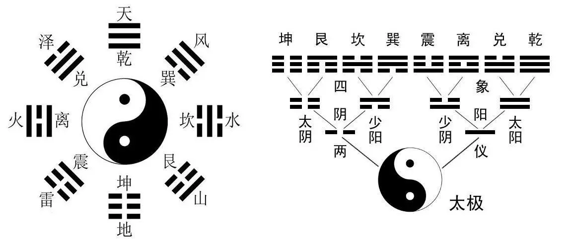 易生太极,太极生两仪,两仪生四象,四象生八卦 。