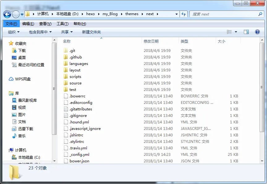 在 next 目录下的 _config.yml 文件中添加以下内容: