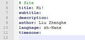 在 hexo 目录下修改配置文件 _cofig.yml,将 language 改为 zh-Hans(简体中文)。