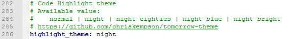 在 next 目录下修改配置文件 _cofig.yml 中的 highlight_theme。