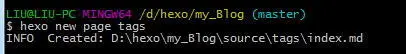 前面通过修改 next 目录下的 _config.yml 文件中的 menu 选项,可以在主页面的菜单栏添加标签选项。