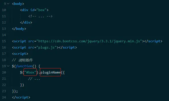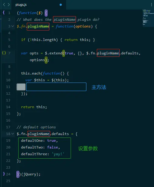 如果使用的是 sublimeText 编辑器,推荐安装插件 jQuery,在文件中输入 plugin + Enter 会自动生成代码片段。