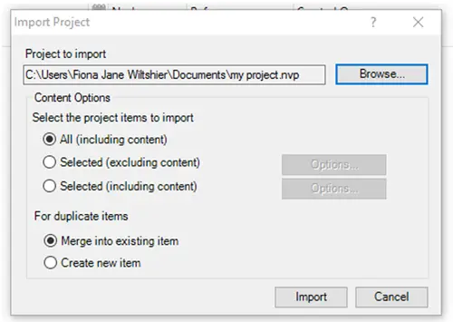 通过将一个工程导入另一个工程,NVivo可以轻松地将两个或多个工程合并在一起,但是仅仅是工程本身合并,并不总是意味着单独工程中的项目也会合并在一起。为了将来自两个工程的项目合并在一起,它们必须是重复的,但我们所说的重复和Nvivo的重复可能并不相同。