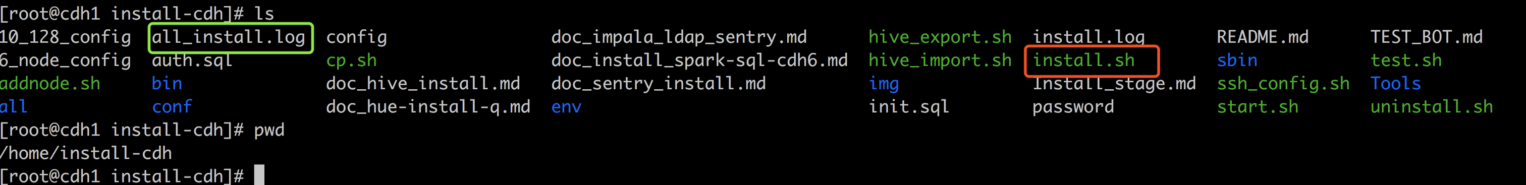 红色的是安装脚本,绿色是安装产生的日志 -
