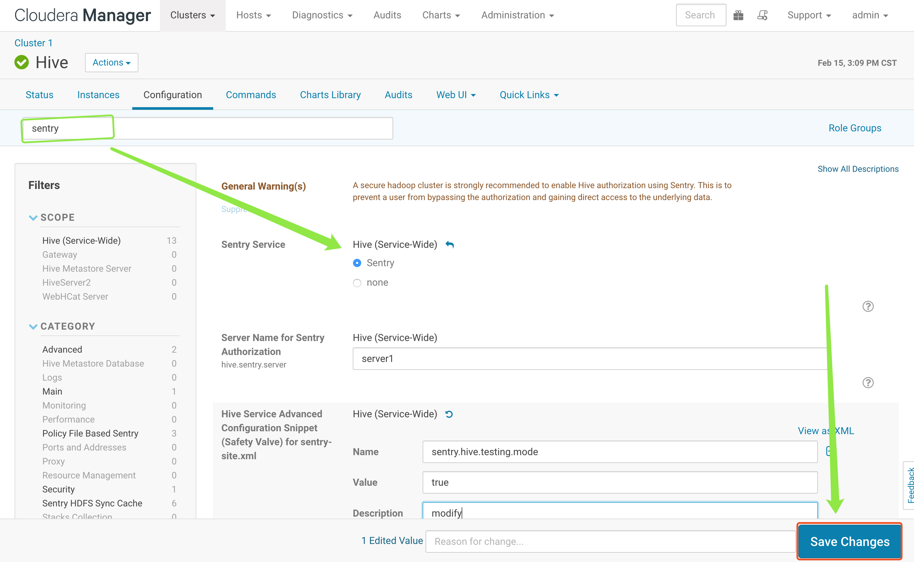 Hive的Hive Service Advanced Configuration Snippet (Safety Valve) for sentry-site.xml