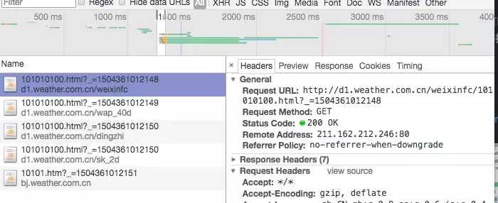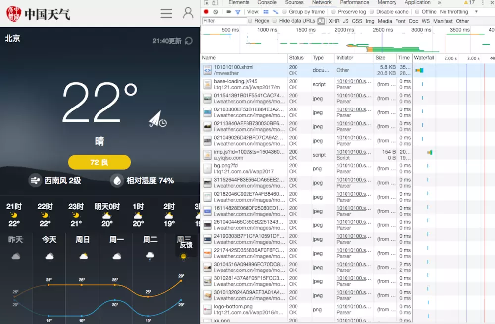我们先访问以下中国天气网页面 看看整个页面都请求了什么