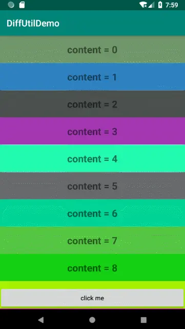DiffUtil的差量计算算法,如果还有同学不明白DiffUtil怎么使用,可以到我的github下载上面的Demo: DiffUtilDemo。