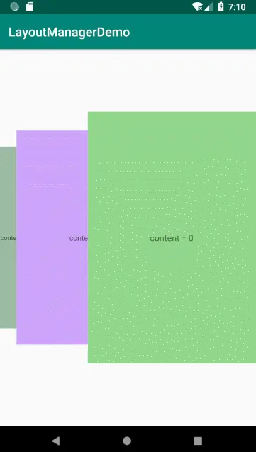我们都知道LayoutManager就是一个布局管理器,主要负责RecyclerView的ItemView测量和布局,所以自定义LayoutManager的过程跟自定义View的过程非常的相似。本文打算从一个Demo开始来介绍怎么自定义一个LayoutManager,效果如下: