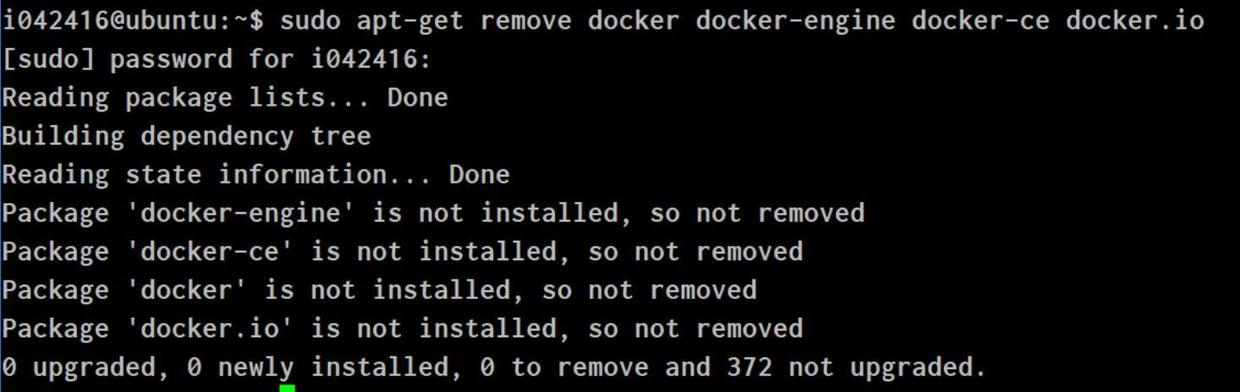 sudo apt-get remove docker docker-engine docker-ce docker.io