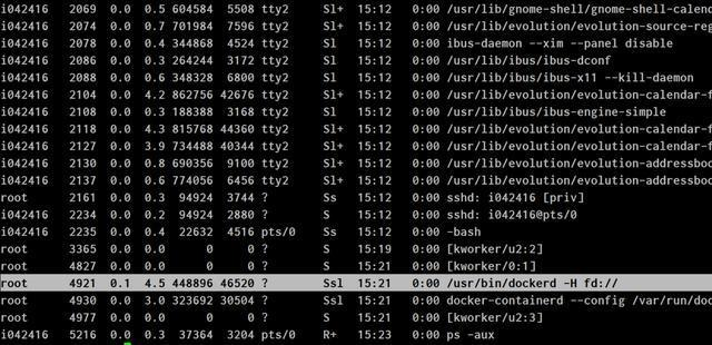 命令行ps -aux查看进程id为4921的进程路径:/usr/bin/dockerd -H fd://