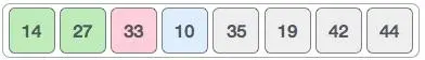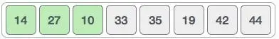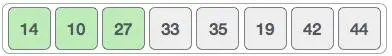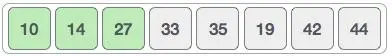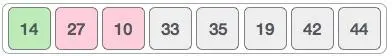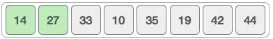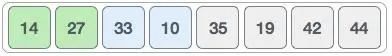 到目前为止,我们在已排序的子列表中有14和27。接下来,它将33与10进行比较。