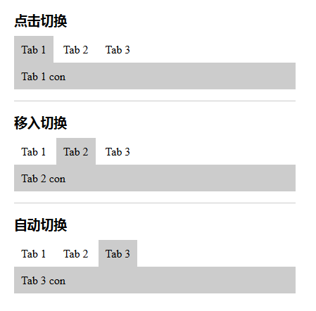 这个插件可以实现三种选项卡效果: