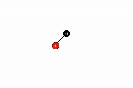 由于 15 是根节点,满足套路 1 ,因此将其由红色置为黑色;再相继插入 5、1:
