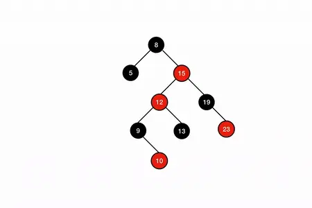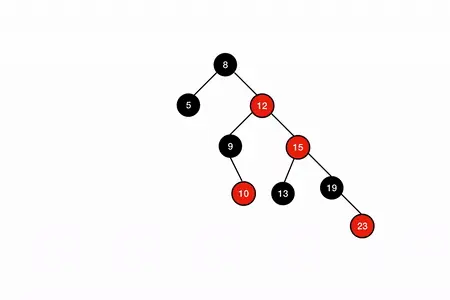 此时满足套路 3,左旋爷爷节点 8 ,再对 8 和 12 重新着色即恢复红黑属性。