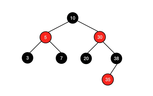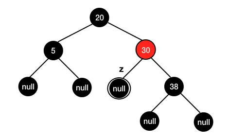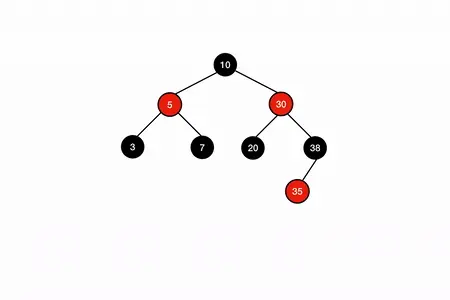 接下来就是解决双黑色的问题了,将 38 置为红色,将 30 置为黑色即恢复红黑树 :