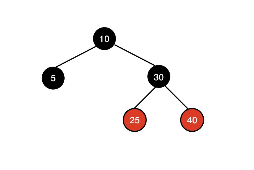 由于节点 30 是根节点,所以直接去掉节点 30 外圈加的黑色: